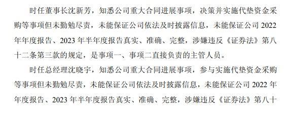 时任董事长沈新芳被给予警告并罚款350万元;时任总经理沈晓宇被给予警告并罚款170万元;时任财务总监杨云被给予警告并罚款100万元;时任财务总监钟伟琴被给予警告并罚款100万元;时任董事会秘书翁鑫怡被给予警告并罚款90万元;时任副总经理、董事会秘书罗斌斌被给予警告并罚款60万元;