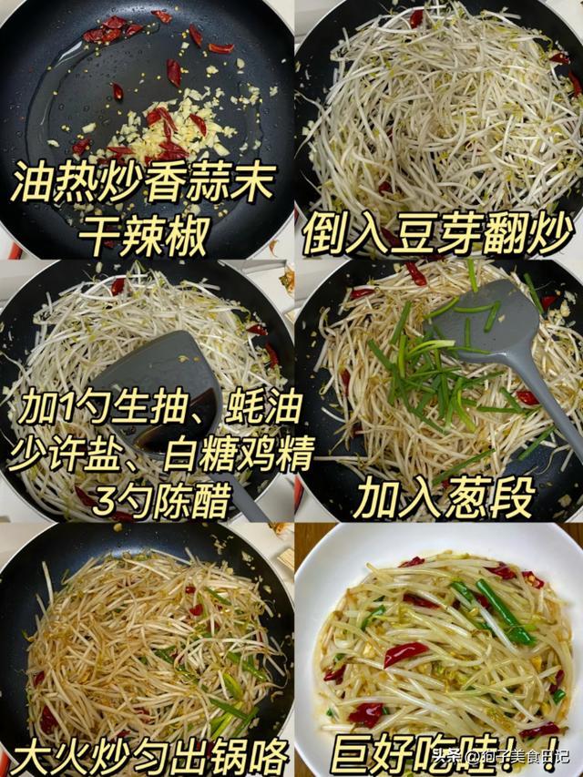 怎么吃:清炒豆芽、醋溜豆芽,几分钟就出锅。或者用豆芽和韭菜一起炒,绿配白,颜色好看,味道也搭。